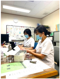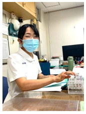 主な業務は体温、血圧測定など毎日の健康チェック、服薬管理、創傷処置、経管栄養などです。受診の付き添いも行います。